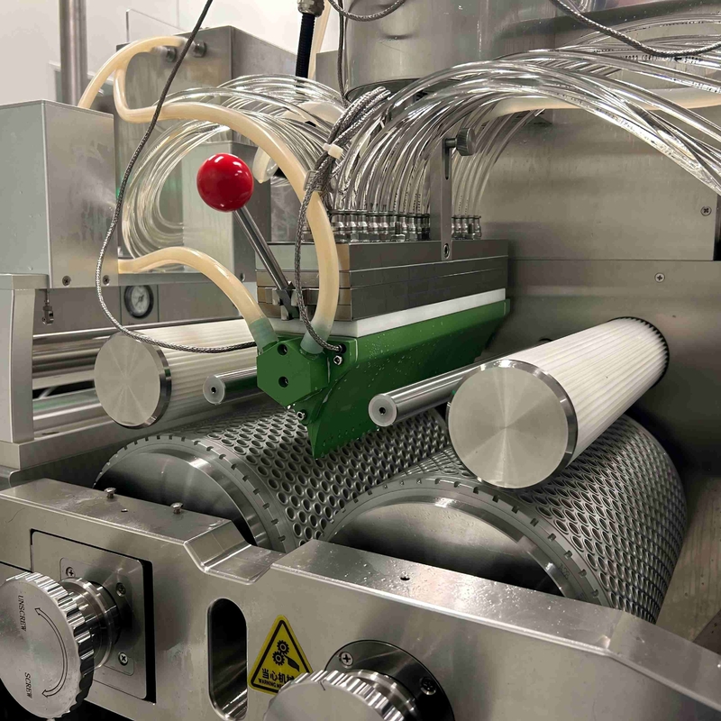 Προσαρμόσιμη Διαχείριση Θερμοκρασίας: Το σύστημα υποστηρίζει προσαρμόσιμους κυλίνδρους ψύξης με ένα ευρύ εύρος ελέγχου θερμοκρασίας από 15 έως 65°C. Αυτό σας επιτρέπει να προσαρμόσετε τη διαδικασία ψύξης στα συγκεκριμένα χαρακτηριστικά της ζελατίνης και του πληρώματος, επιτυγχάνοντας τη βέλτιστη δημιουργία καψουλών για οποιοδήποτε προϊόν.